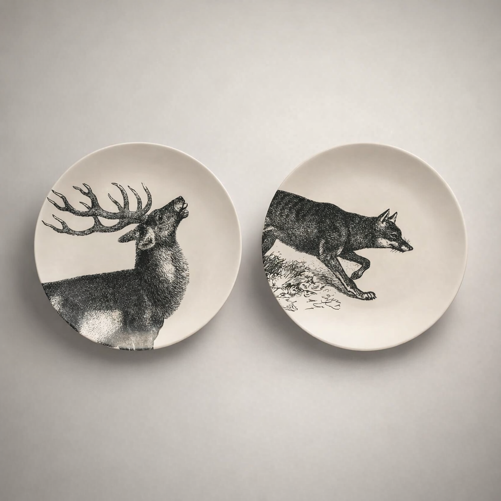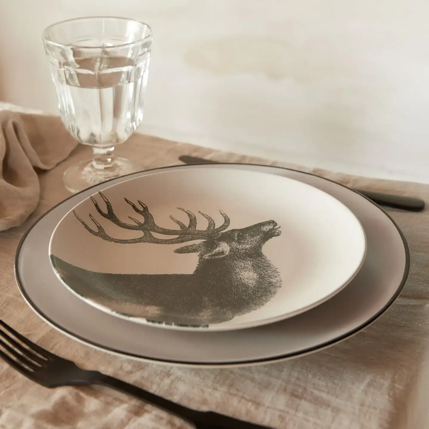 L’appel de la forêt s’invite à votre table. Transformez vos repas en véritables moments de convivialité avec cette magnifique assiette en grès signée par la célèbre maison portugaise Costa Nova. Ornée d’une gravure finement détaillée représentant un cerf majestueux, cette pièce allie à la perfection le charme brut de la faune de montagne à un design résolument élégant.