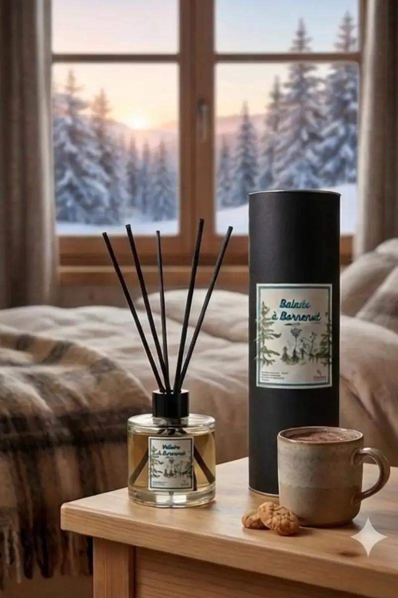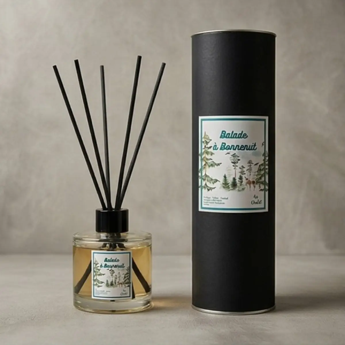 Il règne dans le petit hameau de Bonnenuit une atmosphère suspendue, un silence apaisant que l’on ne trouve nulle part ailleurs. C’est le moment de la journée où la lumière s’adoucit, où l’air se rafraîchit à peine, et où la nature exhale ses parfums les plus secrets. Le bouquet diffuseur Balade à Bonnenuit est une ode à ces fins de journées paisibles, où l’on prend le temps de flâner.