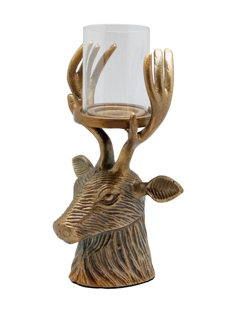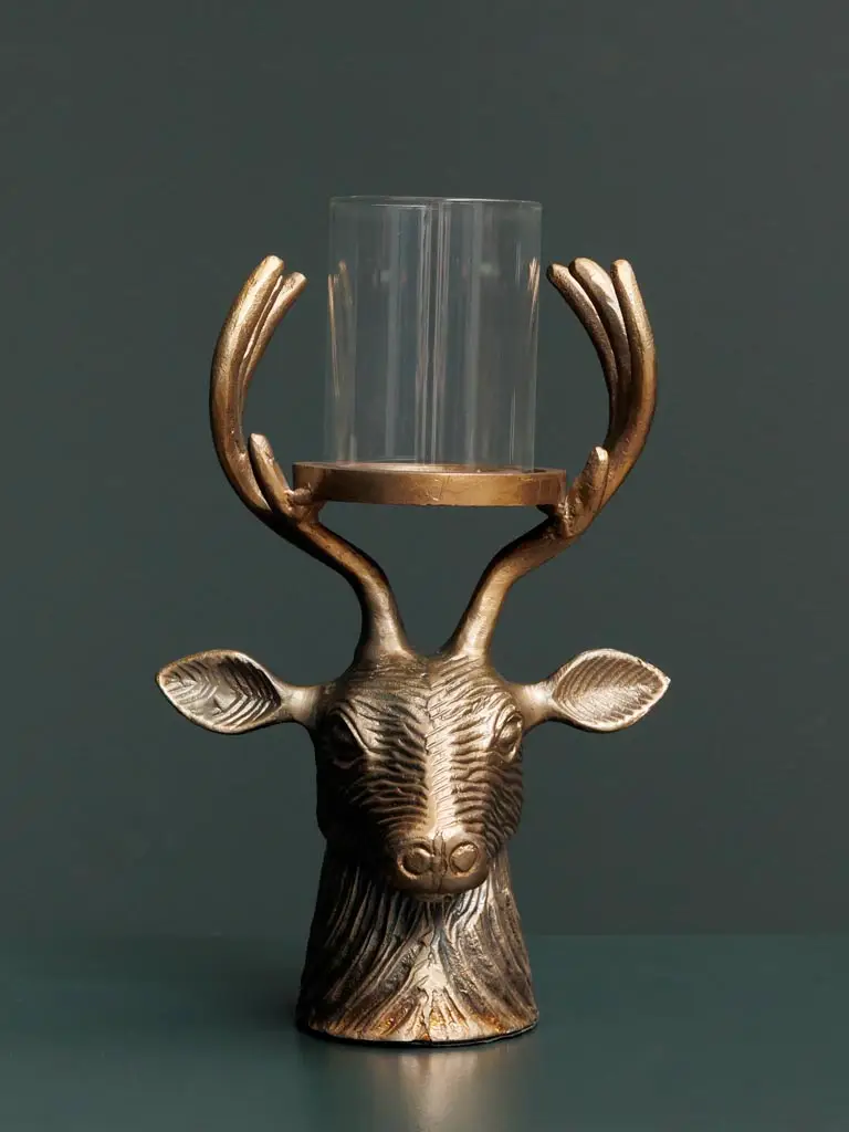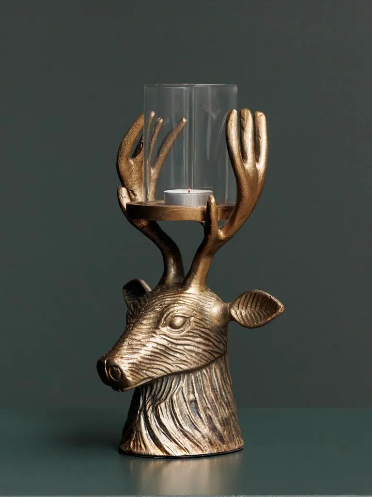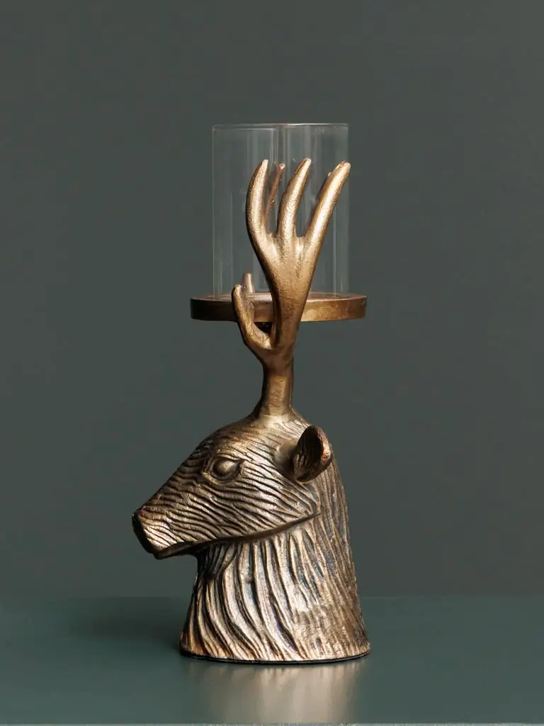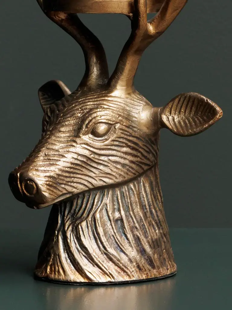 Apportez une touche élégante et originale à votre intérieur avec ce bougeoir tête de cerf en or antique. Un design raffiné qui combine majesté et sophistication, idéal pour ajouter une ambiance chaleureuse et un éclairage doux à votre espace. Un objet décoratif unique qui saura captiver tous les regards.