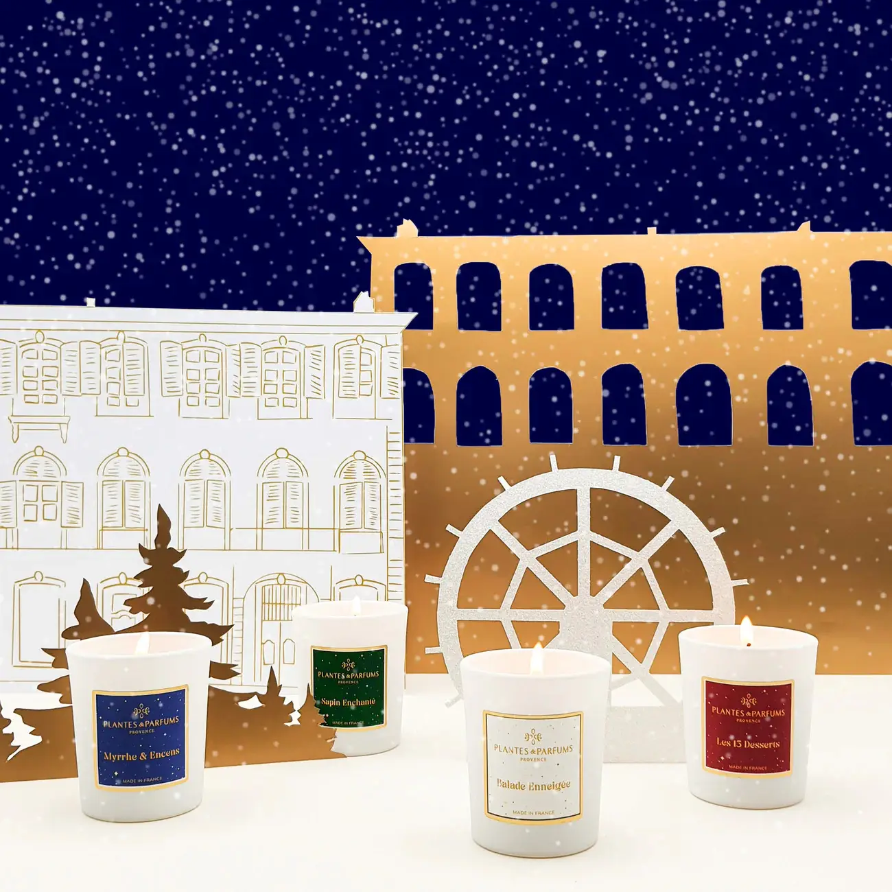 Créez une ambiance chaleureuse et parfumée en allumant la bougie à la cire végétale Balade Enneigée.
