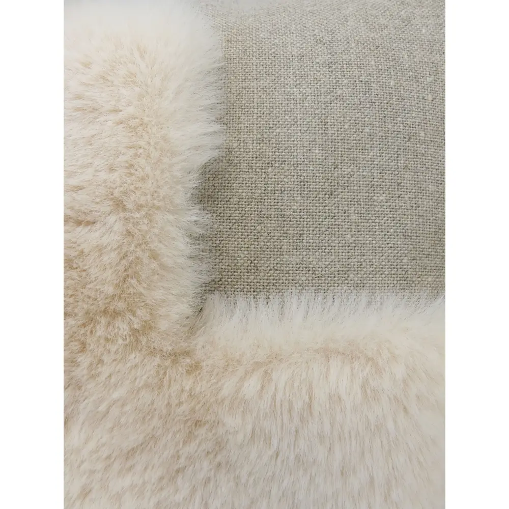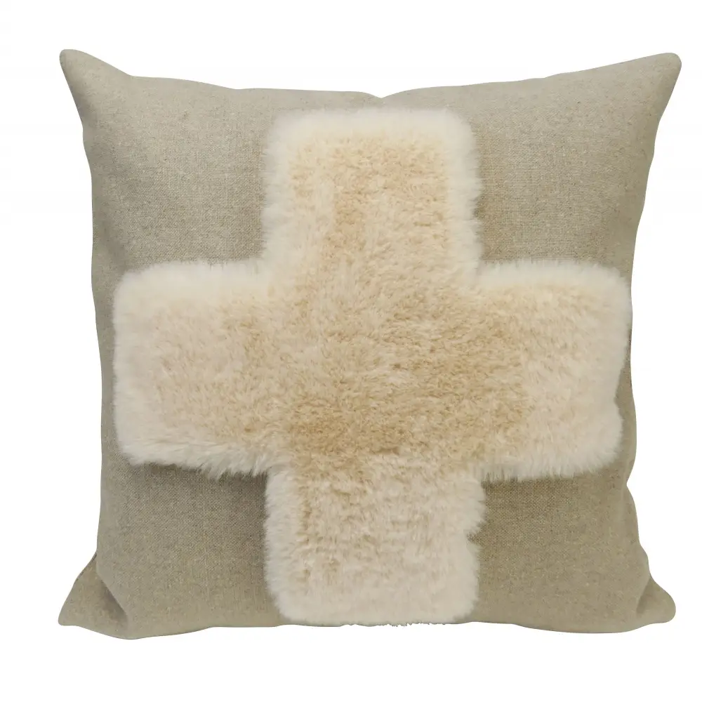 Coussin en feutre 100% laine et fourrure de substitution écrue, avec housse en lin. Disponible en plusieurs couleurs : anthracite, marron, gris, rouge, beige. Dimensions : 45×45 cm ou 50×50 cm, entièrement déhoussable.