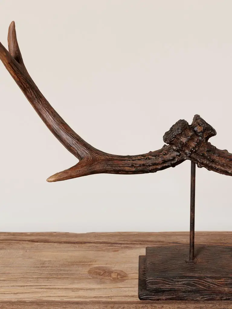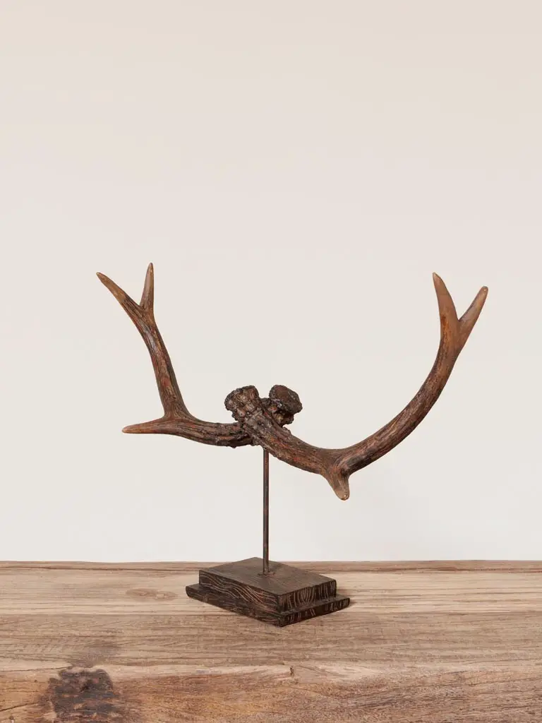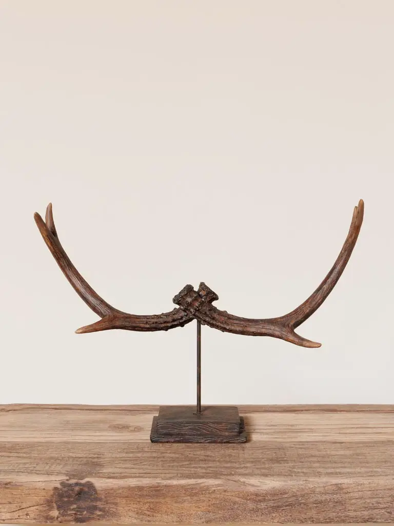 Déco en bois de cerf sur support, une pièce élégante et naturelle pour sublimer votre intérieur. Ce design raffiné apporte une touche rustique et moderne à votre décoration, idéale pour une ambiance chaleureuse et sophistiquée.