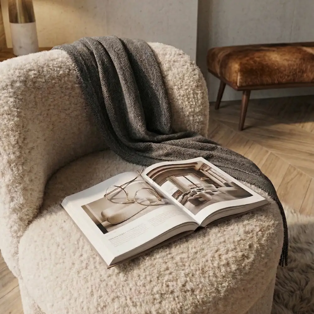Laissez-vous séduire par les courbes généreuses du fauteuil Edouard. Véritable cocon de bien-être, ce fauteuil se distingue par ses lignes audacieuses et son allure « chubby » très tendance. Son tissu bouclette beige, à la fois tactile et lumineux, capte la lumière pour réchauffer l’atmosphère de votre salon.