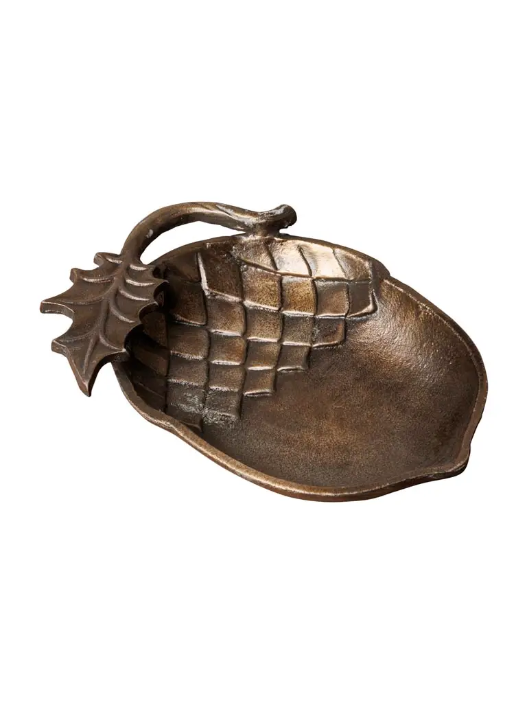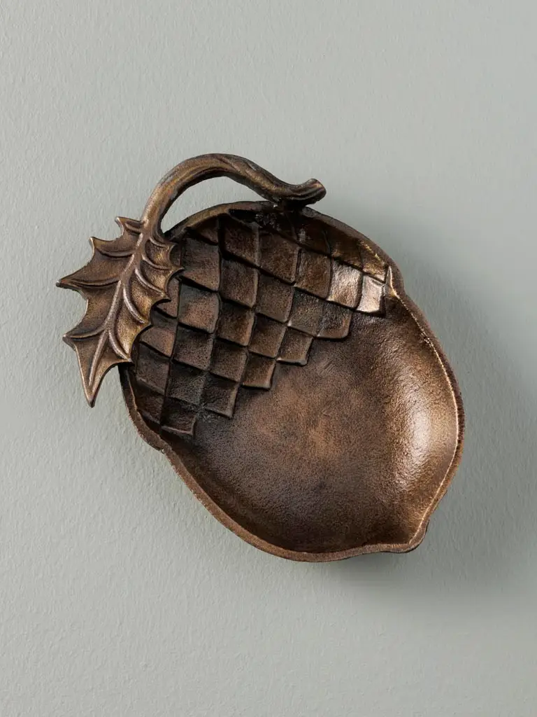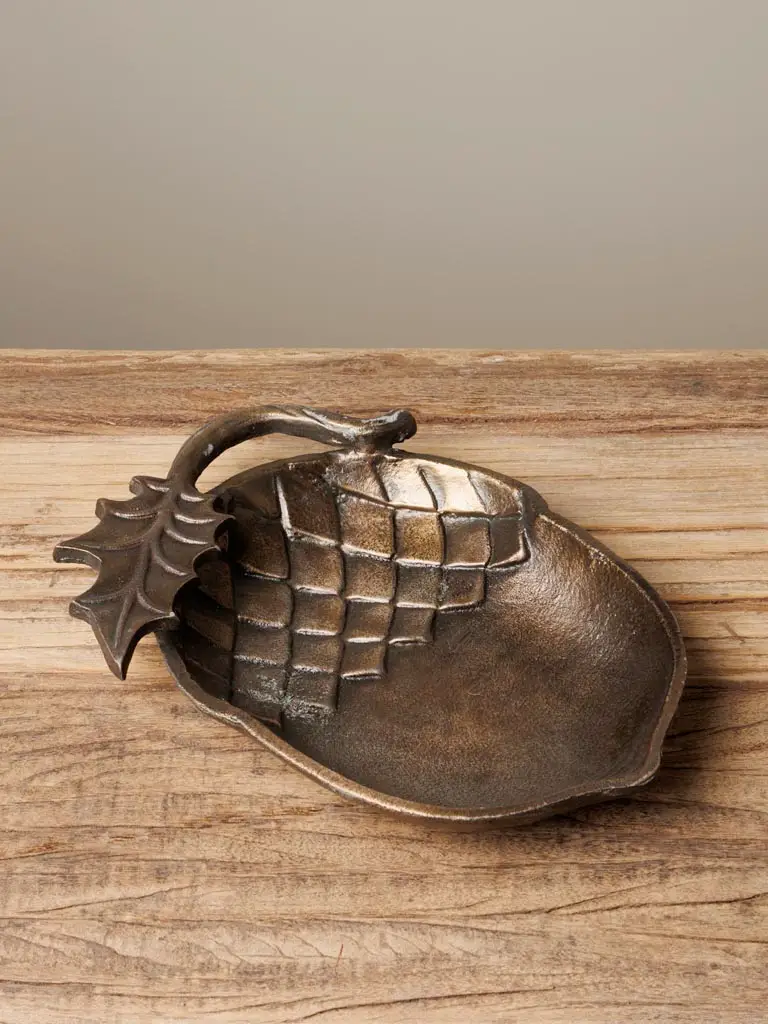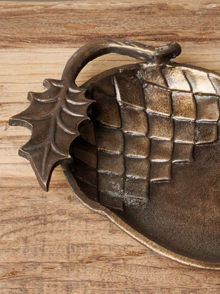 Plateau à bibelots en forme de noix, finition dorée élégante, parfait pour exposer vos objets précieux et ajouter une touche luxueuse à votre décoration.