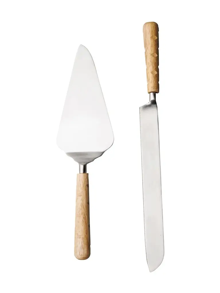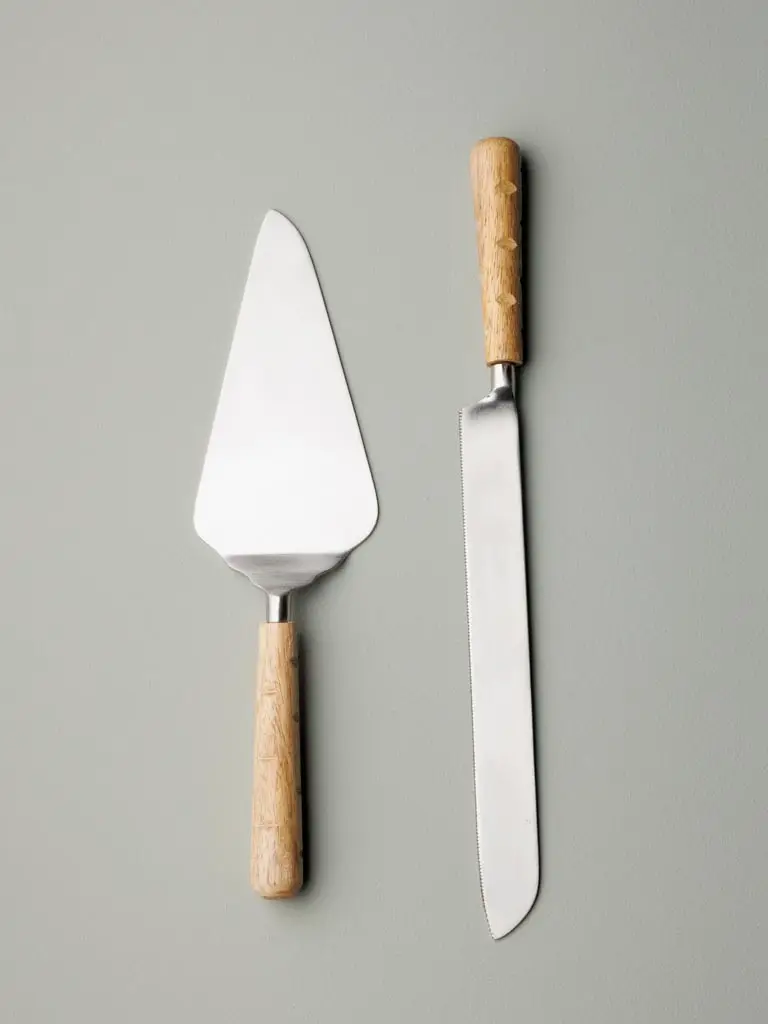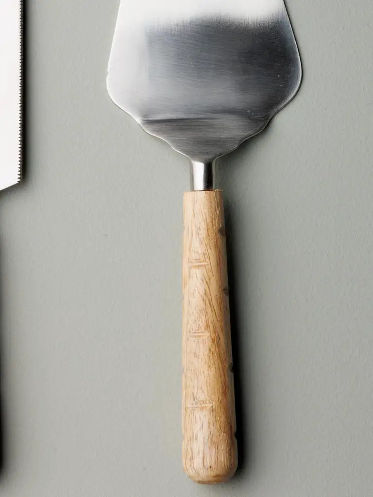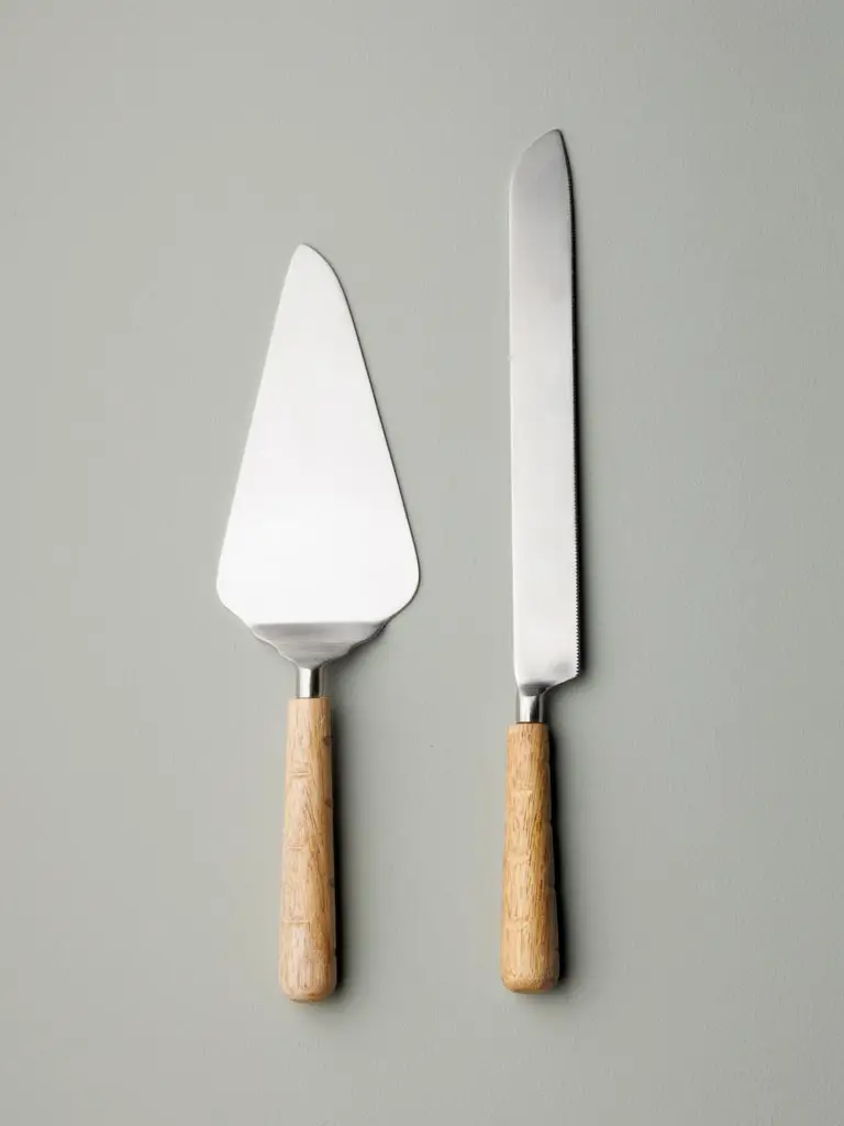 Ce service à gâteau élégant comprend deux serveurs avec des manches en bois, alliant fonctionnalité et design. Idéal pour présenter vos desserts avec style, il ajoutera une touche de raffinement à vos réceptions. Parfait pour les amateurs de pâtisserie et de décoration de table.