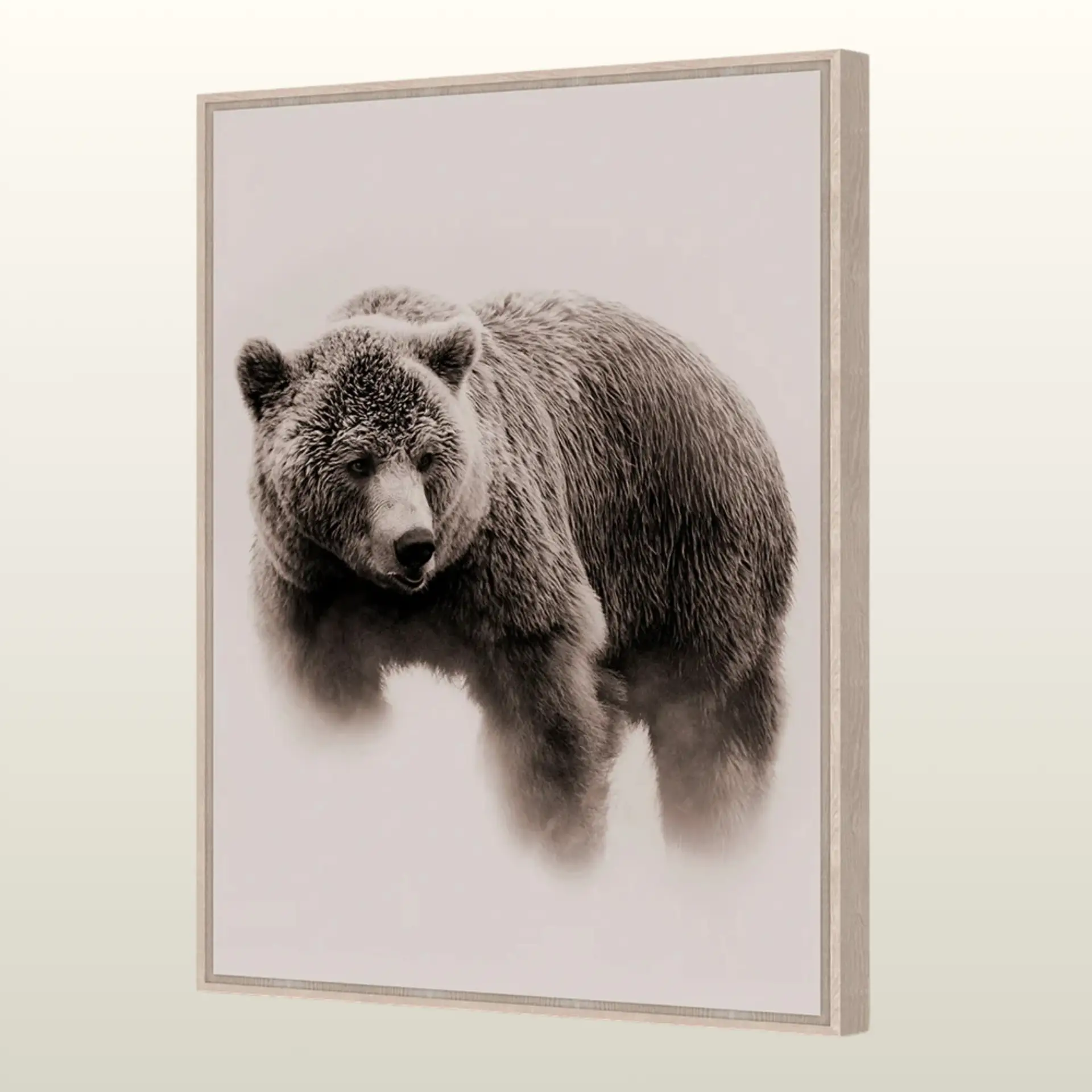 Effet de Profondeur : Le contraste entre la silhouette puissante de l’ours et le fond épuré donne une impression de relief fascinante.