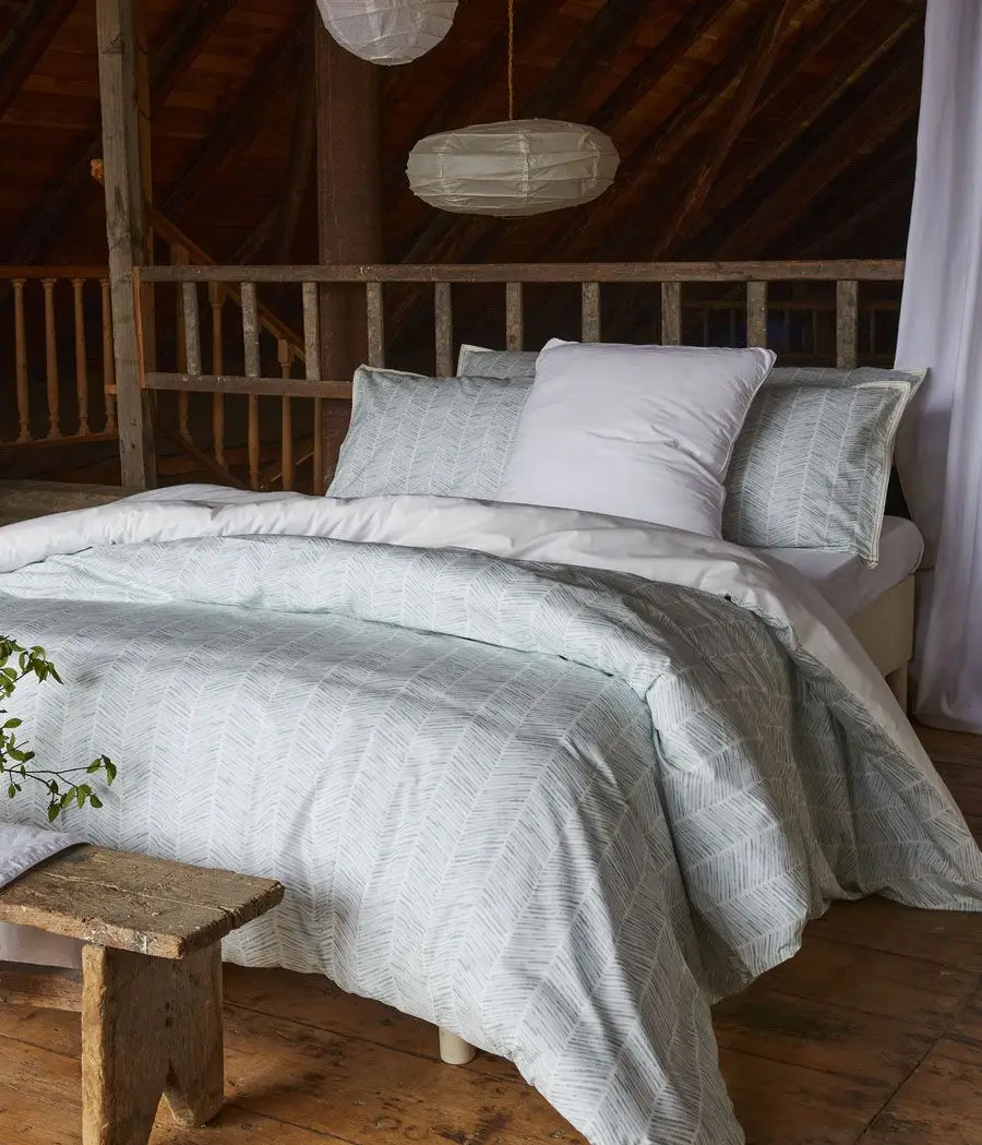 Dans des teintes de bleu céladon, cette taie d’oreiller capture la sérénité des espaces sauvages, invitant à un sommeil profond.