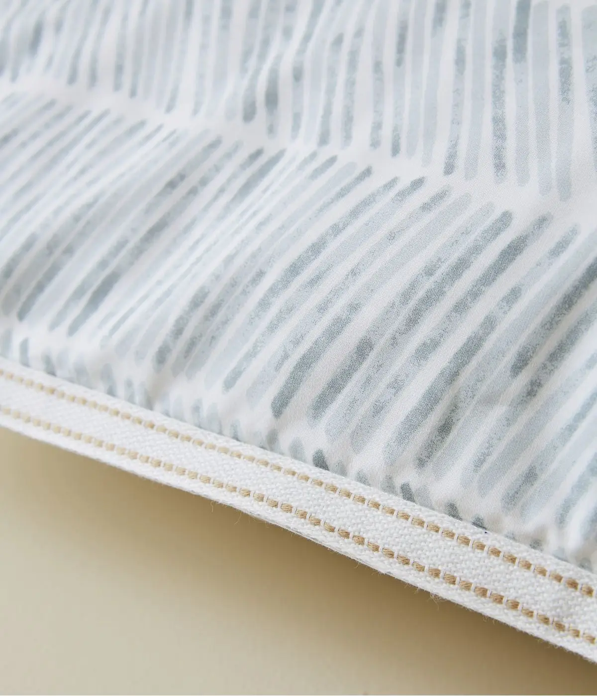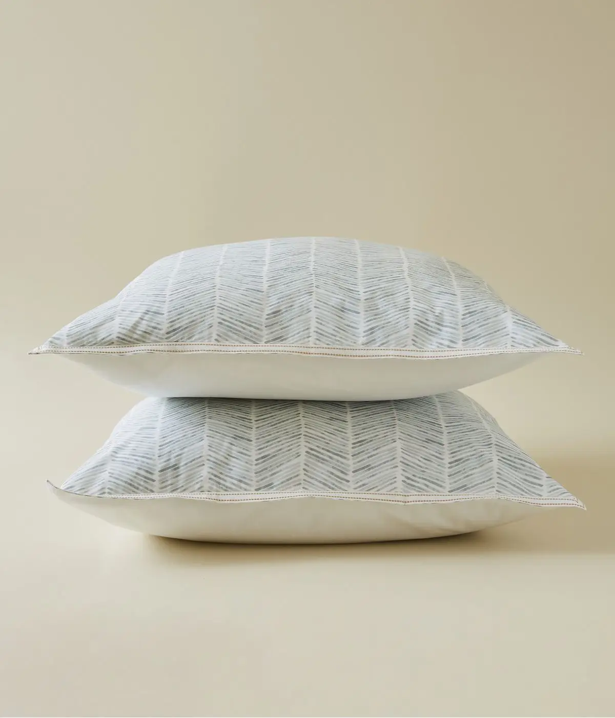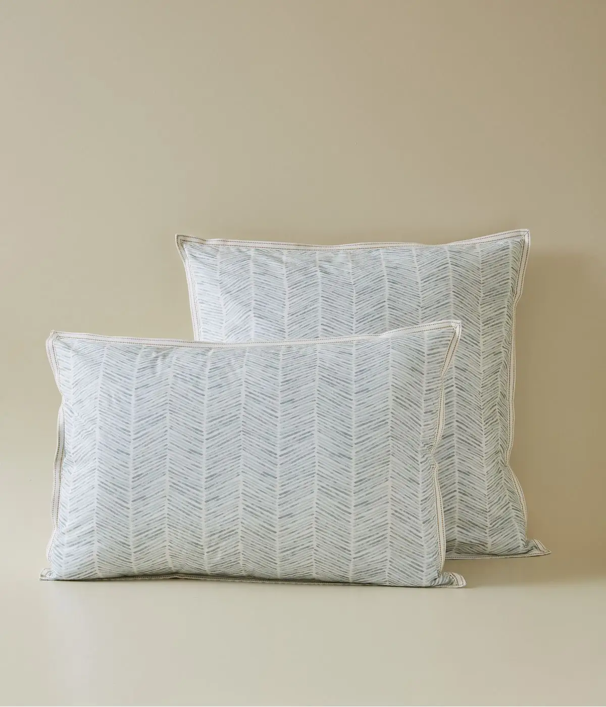 Un galon tissé encadre les taies, soulignant l’authenticité de cette création.